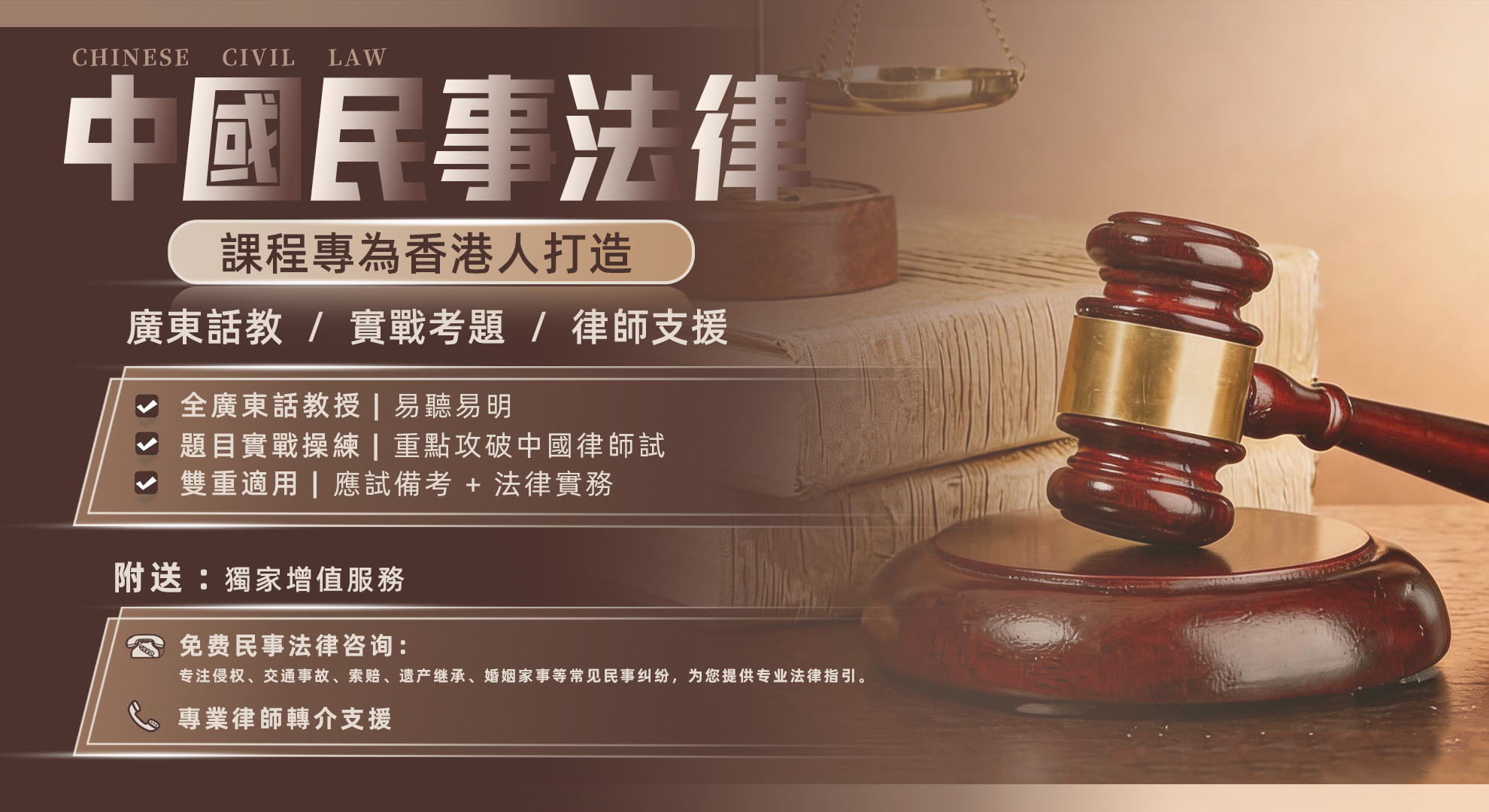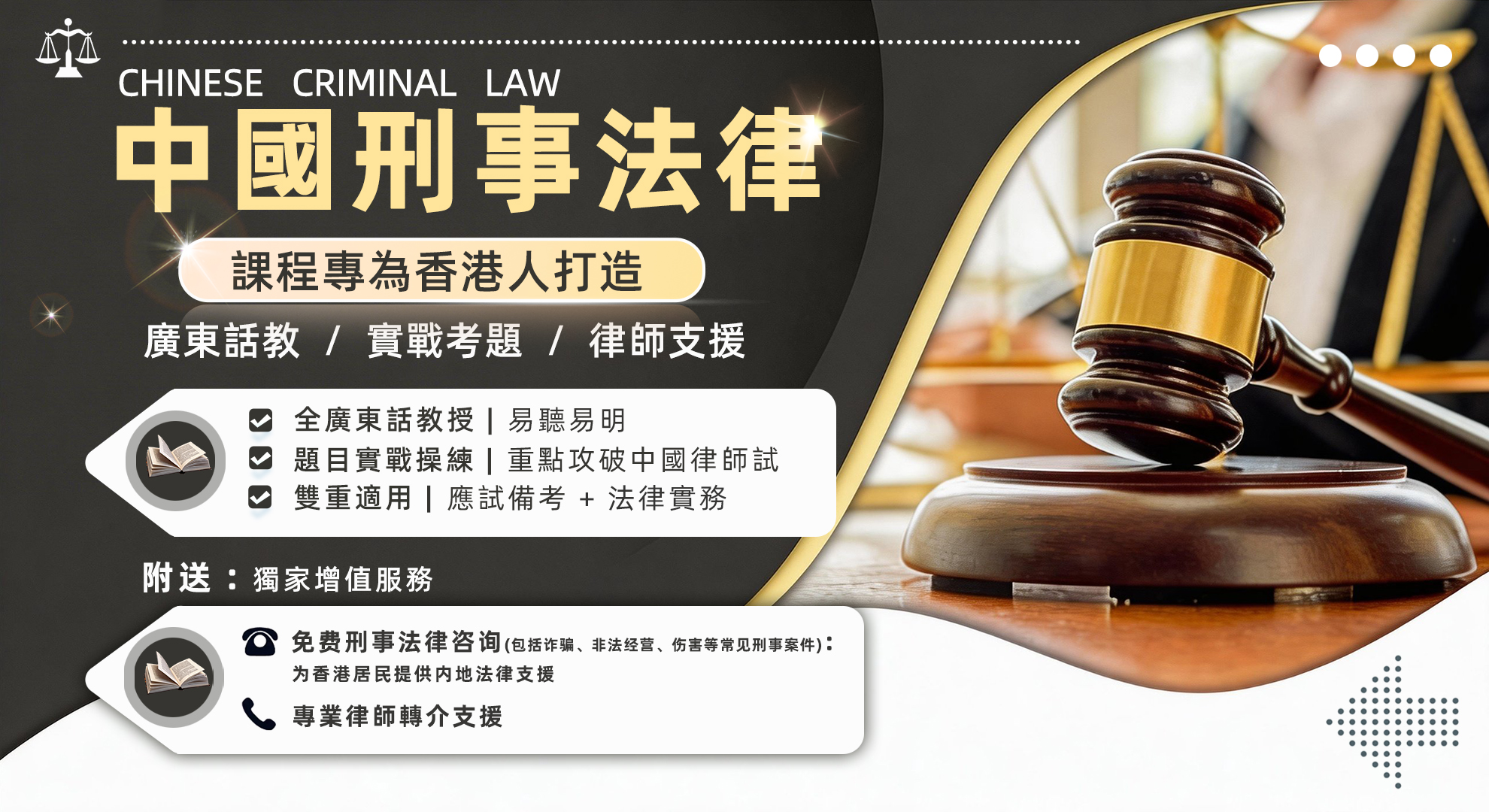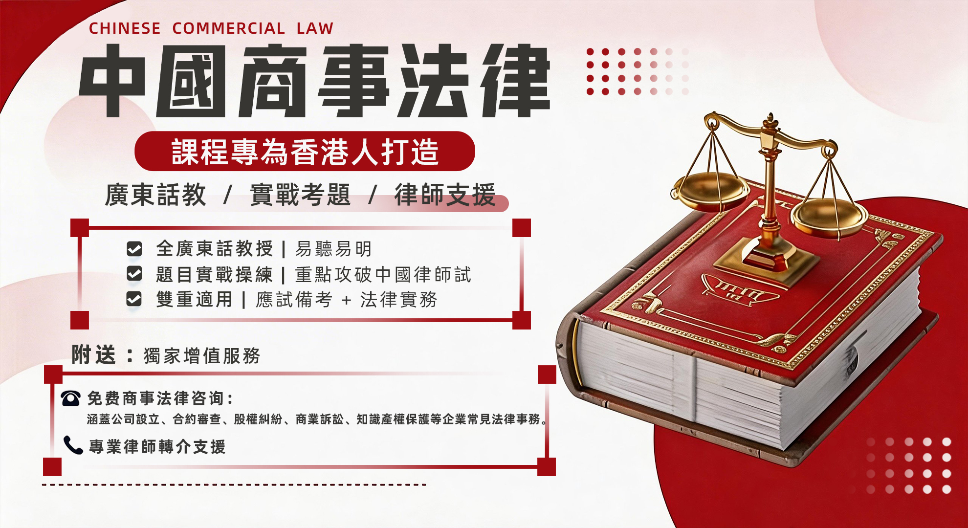 包含全套獨家繁體/簡體對照教材 | 贈送中國法律實務諮詢服務 | 協助安排內地律所實習機會