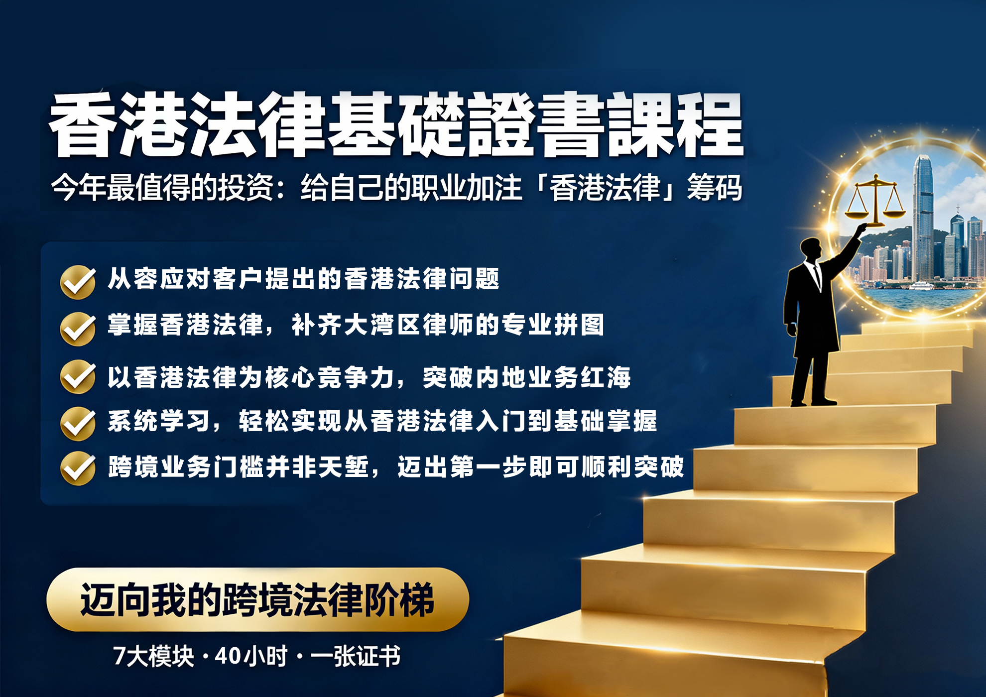 This course is designed for learners who need to systematically master the core principles of Hong Kong law. Covering five key areas, it adopts a modular bilingual approach to help learners efficiently build a comprehensive understanding of Hong Kong’s legal system.